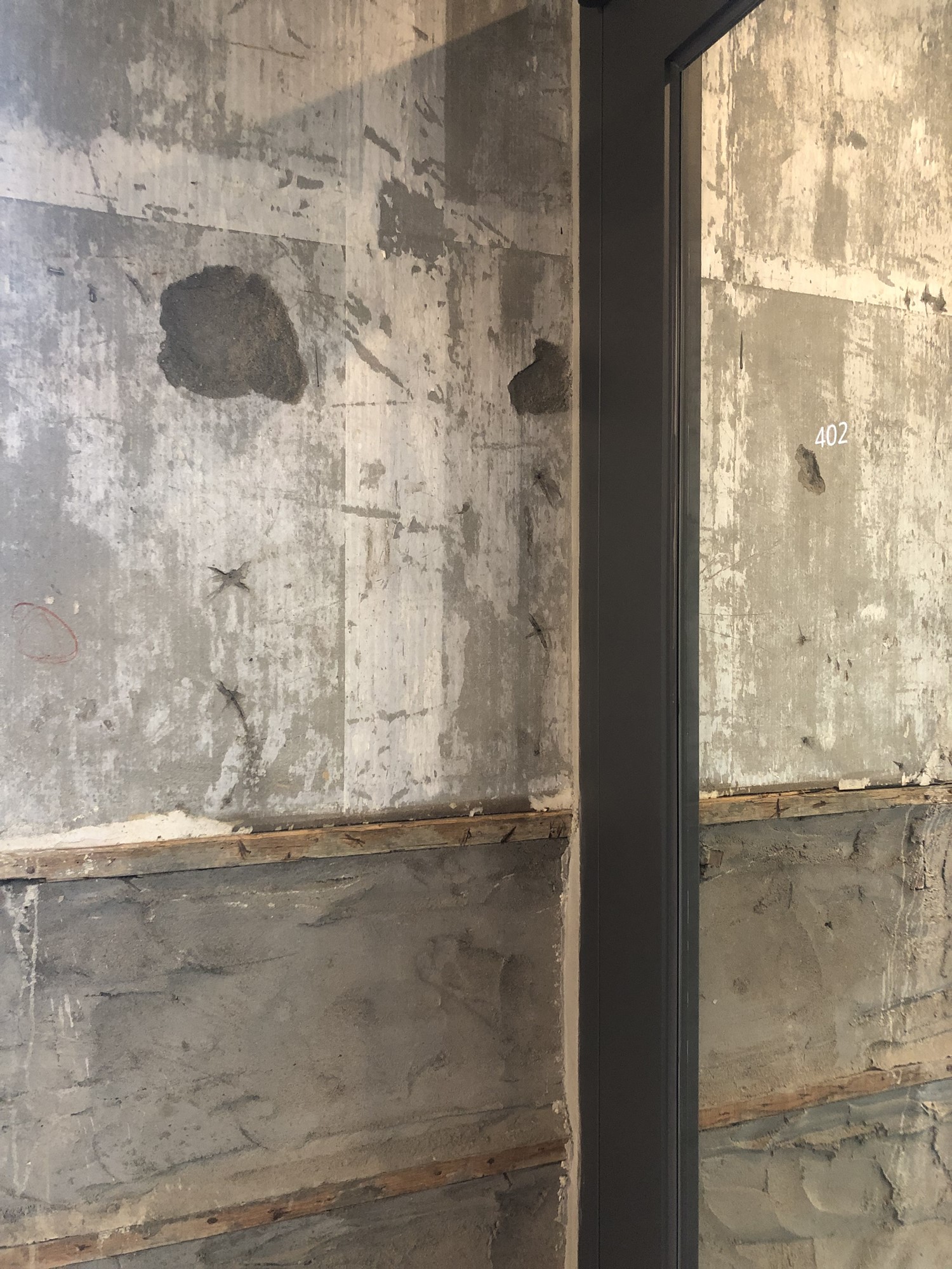 천정에 구멍을 뚫었다가 필요가 없어져 시멘트로 대충 막아놓은 구멍까지...